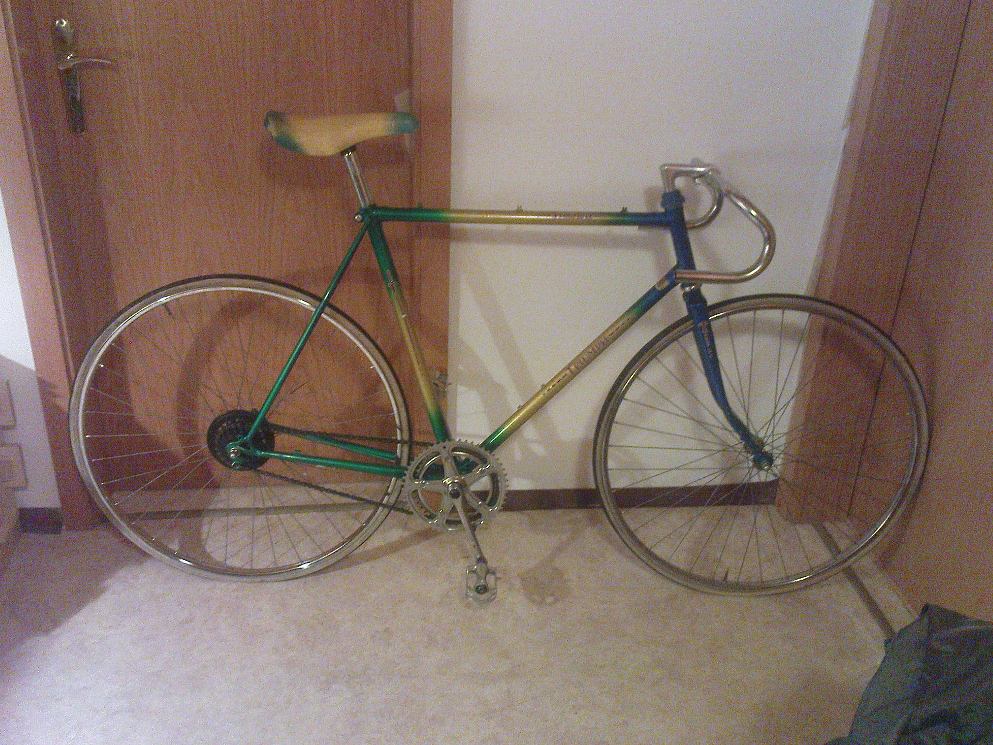 Hier ist meinen alten Polorad-rahmen, komplett mit Tretlager (vierkant JIS) und Steuersatz (1 zoll), horizontale Ausfallenden, keine Delle.. ist schwehr, der Lack hat deutliche gebrauchsspuren und rostet ein bisschen (eine neue Lackierung ist empfohlen) aber ist einfach kostenlos.. komm vorbei und nimm es mit!